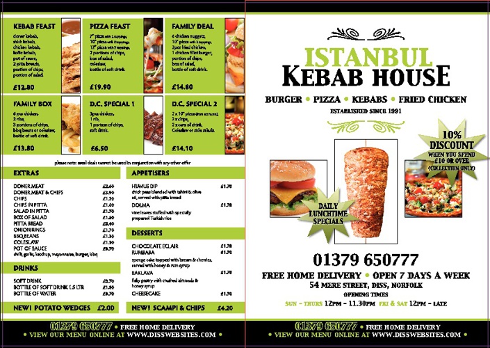 Istanbul Kebab House Diss Takeaway Menu Online